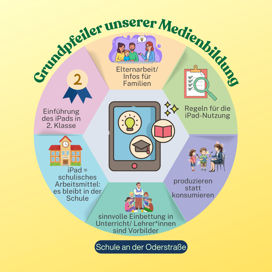 Schaubild der Grundpfeiler der Medienbildung der Oderschule