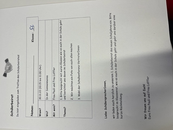 Endlich tagt wieder der Schüler:innenbeirat. Frau Pauli und Frau Löffler luden alle neuen Klassensprecher:innen zu einem Treffen in die Mondmensa ein. Alle Klassensprecher:innen tauschten sich über alles aus, was ihnen in der Schule aufgefallen ist. Das ging los mit den Bericht über die verschmutzten Toiletten, und die Freude darüber, dass alle Kinder seit den Herbstferien alleine in ihre Klassen gehen dürfen. Auch die Anschaffung der neuen Bewgungskiste für den großen Schulhof, sorgte für Freude. Es war eine spannende Sitzung. Die vielen Anregungen helfen dabei, dass unsere Schule noch mehr Spaß macht.